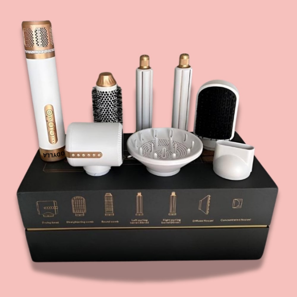 Revoluciona tu rutina capilar con nuestro cepillo secador profesional 7 en 1. Un solo aparato para secar, alisar, rizar, dar volumen y estilizar tu cabello como en la peluquería.